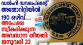 ഡൽഹി ഡവലപ്മെന്റ് അതോറിറ്റിയിൽ 190 ഒഴിവുകൾ .. അപേക്ഷ സ്വീകരിക്കുന്ന അവസാന തീയതി: ജനുവരി 22
