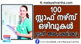 100 സ്റ്റാഫ് നഴ്സ് ഒഴിവുകൾ ഉടൻ അപേക്ഷിക്കൂ