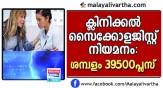 ക്ലിനിക്കൽ സൈക്കോളജിസ്റ്റ് നിയമനം: ശമ്പളം 39500 പ്ലസ്