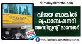 വിജയ ബാങ്കിൽ പ്രൊബേഷനറി അസിസ്റ്റന്റ് മാനേജർ തസ്തികയിൽ വിജയ ബാങ്കിൽ പ്രൊബേഷനറി അസിസ്റ്റന്റ് മാനേജർ തസ്തികയിൽ ഒഴിവിലേക്ക് അപേക്ഷ ക്ഷണിക്കുന്നു