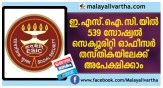 ഇ.എസ്.ഐ.സി.യിൽ 539 സോഷ്യൽ സെക്യൂരിറ്റി ഓഫീസർ തസ്തികയിലേക്ക് അപേക്ഷിക്കാം