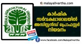 കാർഷിക സർവകലാശാലയിൽ അസിസ്റ്റൻഡ് പ്രൊഫസ്സർ