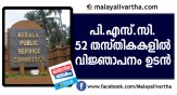 പി.എസ്.സി. 52 തസ്തികകളിൽ വിജ്ഞാപനം ഉടൻ