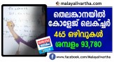തെലങ്കാനയിൽ കോളേജ് ലെക്ച്ചർ ഒഴിവുകൾ: സെപ്തംബർ 13 നു മുൻപ് അപേക്ഷിക്കേണ്ടതാണ്