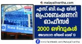 സ്റ്റേറ്റ് ബാങ്ക് ഓഫ് ഇന്ത്യയിൽ പ്രൊബേഷനറി ഓഫീസർമാരുടെ 2000 ഒഴിവുകൾ