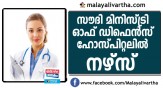 സൗദി മിനിസ്ട്രി ഓഫ് ഡിഫെൻസ് ഹോസ്പിറ്റലിൽ നഴ്സ് തസ്തികയിൽ അപേക്ഷ ക്ഷണിക്കുന്നു