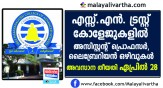 കൊല്ലം ആസ്ഥാനമായി പ്രവര്ത്തിക്കുന്ന ശ്രീനാരായണ ട്രസ്റ്റിനുകീഴിലുള്ള കോളേജുകളിലും നെടുങ്കണ്ടത്തുള്ള ശ്രീനാരായണ ട്രെയ്നിങ് കോളേജിലും അസിസ്റ്റന്റ് പ്രൊഫസര്, ലൈബ്രേറിയന് തസ്തികകളിലെ ഒഴിവുകളിലേക്ക് അപേ...