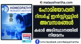 ആയുഷ് മന്ത്രാലയത്തിന്റെ കീഴിൽ കോട്ടയത്തു പ്രവർത്തിക്കുന്ന നാഷണൽ ഹോമിയോപ്പതി റിസർച്ച് ഇൻസ്റ്റിറ്റ്യൂട്ട് ഇൻ മെന്റൽ ഹെൽത്ത് വിവിധ തസ്തികയിലേക്ക് കരാർ അടിസ്ഥാനത്തിലേക്കു നിയമനം നടത്തുന്നു
