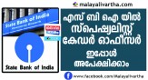 സ്റ്റേറ്റ് ബാങ്ക് ഓഫ് ഇന്ത്യയിൽ സ്പെഷ്യൽ കേഡർ ഓഫീസർ തസ്തികയിലേക്ക് അപേക്ഷ ക്ഷണിക്കുന്നു