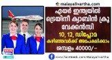 എയർ ഇന്ത്യയിൽ 10 ,12 , ഡിപ്ലോമ കഴിഞ്ഞവർക്ക് ക്യാബിൻ ക്രൂ ട്രെയിനി ആകാൻ അവസരം