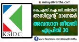 കേരള സ്റ്റേറ്റ് ഇൻഡസ്ട്രിയൽ ഡെവലപ്മെന്റ് കോർപറേഷൻ ലിമിറ്റഡിൽ അസിസ്റ്റന്റ് മാനേജർ തസ്തികയിലെ 3 ഒഴിവുകളിലേക്ക് സ്പെഷ്യൽ റിക്രൂട്ട്മെന്റ് നടത്തുന്നു .അംഗപരിമധർ (പി .എച് ),ഒ.ബി.സി ,എസ് .ടി ...