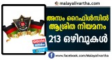 അർധസൈനിക വിഭാഗമായ അസം റൈഫിൾസിലേക്കു ആശ്രിത നിയമനത്തിന് അപേക്ഷ ക്ഷണിക്കുന്നു.വിവിധ തസ്തികകളിലായി 213 ഒഴിവുകളുണ്ട് .പുരുഷന്മാർക്കും വനിതകൾക്കും പങ്കെടുക്കാം.അസം റൈഫിൾസിൽ സർവീസിലിരിക്കെ കൊല്ലപ്പെട്ടവരുടെ...