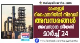 എംപ്ലോയബിലിറ്റി സെന്ററും റൂറല് ക്യാരിയര് ഏജന്സിയും തൊഴിലന്വേഷകര്ക്ക് സഹായകമാകുന്നു . ആകെ 100 ഒഴിവുകളാണ് ഉള്ളത് . പത്താം ക്ലാസ്സാണ് യോഗ്യത . ഉയര്ന്ന പ്രായം 35. തൃശൂര്, പാലക്കാട് എന്നീ ജില്ലകളിലാണ...