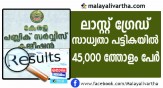 ലാസ്റ്റ് ഗ്രേഡ് നിയമനത്തിന് 45 ,000 ത്തോളം പേരുടെ സാധ്യതാപട്ടിക പ്രസിദ്ധികരിക്കാന് പി എസ് സി തീരുമാനിച്ചു .14 ജില്ലകളുടെ മുഖ്യപട്ടികയില് 22 ,500 പേരെ ഉള്പ്പെടുത്തും . കൂടാതെ ഉപപട്ടികയും ഉള്പ്പെടുത...