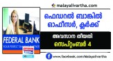 ഫെഡറൽ ബാങ്കിൽ ഒാഫിസർ (സ്കെയിൽ I), ക്ലർക്ക് തസ്തികകളിൽ അപേക്ഷിക്കാം