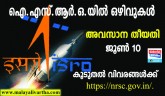 ഐഎസ്ആര്ഒയില് വിവിധ തസ്തികകളിലേക്ക് അപേക്ഷ ക്ഷണിച്ചു