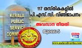 117 തസ്തികകളിലേക്ക് പിഎസ്സി അപേക്ഷ ക്ഷണിച്ചു. അവസാന തീയതി ജൂലൈ 5