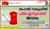 തപാല് വകുപ്പ് കേരള പോസ്റ്റല് സര്ക്കിളില് പത്താം ക്ലാസ്സുകാർക്ക് അവസരം