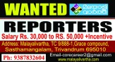ജേർണലിസം കോഴ്സ് പാസ്സായ റിപ്പോർട്ടർമാരെ ആവശ്യമുണ്ട്..സോഷ്യൽ മീഡിയ ട്രെൻഡിയായ വിഷയങ്ങൾ കണ്ടെത്തി അവതരിപ്പിക്കുവാൻ അഭിരുചിയുള്ളവർക്ക് പ്രവൃത്തി പരിചയത്തിന്റെയും കഴിവിന്റെയും അടിസ്ഥാനത്തിൽ 30000 രൂപ മുതൽ 50000 രൂപവരെ ശമ്പളം