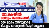 യു.കെയിൽ ജനറൽ നഴ്സുമാർ ഉൾപ്പെടെയുള്ളവർക്ക് അവസരം; യു.കെയിലെ നഴ്സിംഗ് ഹോമുകളിലാണ് 200 ൽ അധികം ഒഴിവുകൾ ഉള്ളത് . പഠിച്ചിറങ്ങിയവർക്ക് ഉൾപ്പെടെയുള്ളവർക്ക് അപേക്ഷിക്കാം.പ്രവർത്തി പരിചയം നിർബന്ധമല്ല .. റിക്രൂട്ട്മെന്റ് തികച്ചും സൗജന്യം