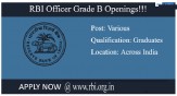 റിസര്വ് ബാങ്ക് ഓഫ് ഇന്ത്യയില് വിവിധ ഗ്രേഡ് ബി ഓഫീസര് തസ്തികകളിലേക്ക് ഇപ്പോൾ അപേക്ഷിക്കാം....ഓണ്ലൈന് അപേക്ഷ സ്വീകരിക്കുന്ന അവസാന തീയതി - ഒക്ടോബര് 11
