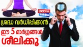ജീവിതത്തിൽ ഏറ്റവും അത്യാവശ്യം വേണ്ട പ്രധാനപ്പെട്ട ഘടകങ്ങളിൽ ഒന്നാണ് കോൺസെൻട്രേഷൻ അഥവാ ശ്രദ്ധ. ശരീരവും മനസ്സും ഒരേപോലെ കൂടിച്ചേരുമ്പോഴാണ് ശ്രദ്ധയുണ്ടാകുന്നത്. ശ്രദ്ധയുള്ളവരുടെ ഒന്നാമത്തെ ഗുണം അവർക്ക...