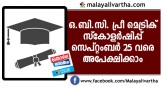ഒ.ബി.സി. പ്രീ മെട്രിക് സ്കോളർഷിപ്പ് സെപ്റ്റംബർ 25 വരെ അപേക്ഷിക്കാം