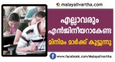 എന്ജിനീയറിംഗ് എന്ട്രന്സ് പരീക്ഷ: മിനിമം മാര്ക്ക് പത്തില് നിന്ന് ഇരുപതായി ഉയര്ത്താന് പരീക്ഷാ പരിഷ്കരണ സമിതി ശുപാര്ശ