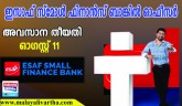 റിസര്വ് ബാങ്ക് അംഗീകൃത സ്ഥാപനമായ ഇസാഫ് സ്മോള് ഫിനാന്സ് ബാങ്കില് ഒഴിവുകൾ