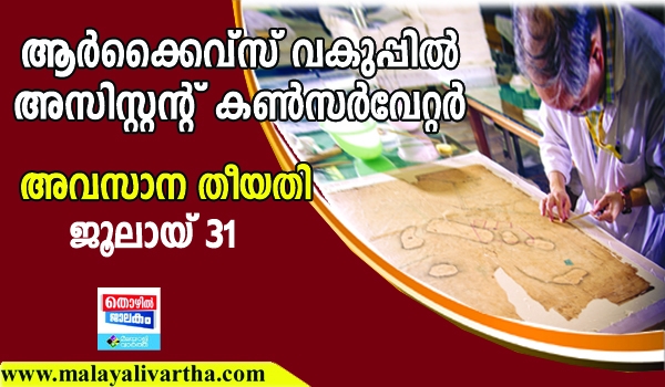 സംസ്ഥാന ആർക്കൈവ്സ് വകുപ്പിൽ അസിസ്റ്റന്റ് കണ്സർവേറ്റർ