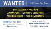 തിരുവനന്തപുരം കേന്ദ്രമായി പ്രവര്ത്തിക്കുന്ന കോര് മീഡിയാടെക് സോഷ്യല് മീഡിയ പ്രൊമോഷന് ടീമിലേക്ക് കഴിവും പ്രാഗത്ഭ്യവുമുള്ള പെണ്കുട്ടികളെ പ്രോഗ്രാം അവതാരകരായും, ഫേസ്ബുക്ക് പ്രചാരകരായും ആവശ്യമുണ്ട്...