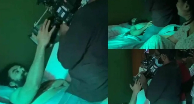കിടക്കയിൽ മലന്ന് കിടക്കുന്ന ടൊവിനോയുടെ മുകളിൽ കയറിയിരുന്നാണ് ഛായാഗ്രാഹകൻ അഖിൽ ജോര്ജ്ജ് രംഗം ചിത്രീകരിച്ചത്. സമീപത്തായി നായിക ദിവ്യ പിള്ള ഇരിക്കുന്നതും വീഡിയോയിൽ കാണുന്നുണ്ട്.