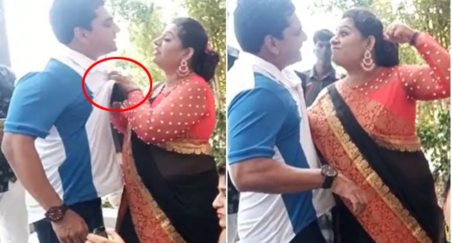 ബീന ആന്റണി കാര്ത്തിക്കിന്റെ ഷര്ട്ടിന്റെ കോളറിന് പിടിച്ച് താക്കീത് ചെയ്യുന്നതും വഴക്ക് പറയുന്നതുമൊക്കെയാണ് വീഡിയോയിലുള്ളത്. എന്നാല് തമാശയ്ക്ക് വേണ്ടി സെറ്റിലെ ഇടവേളയില് പകര്ത്തിയ വീഡിയോ ആയിരുന്നു ഇത് . കല്യാണ് എടുത്ത സെല്ഫി വീഡിയോ ആയിരുന്നത്. ഈ വീഡിയോയ്ക്ക് ഇടയില് നടിമാരായ ശ്രീശ്വത, ജെലീന, സബിത നായര് എന്നിവര് സെല്ഫി എടുക്കുന്നതും കാണാം.