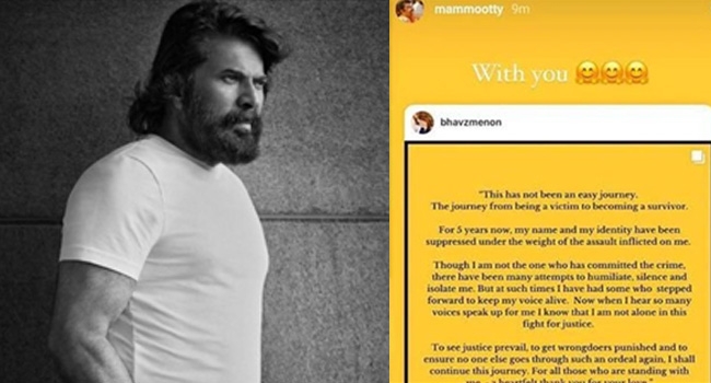 'വിത്ത് യു'; ആക്രമിക്കപ്പെട്ട നടിക്ക് പിന്തുണയര്പ്പിച്ച് മമ്മൂട്ടി; താരം പിന്തുണയറിയിച്ചത് ഇന്സ്റ്റഗ്രാം സ്റ്റോറിയിലൂടെ
