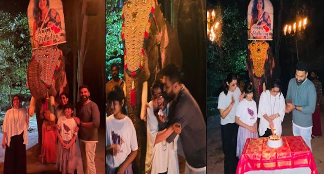 അഭിരാമിയുടെ പിറന്നാളാണ് ഗോപി സുന്ദർ ആഘോഷിച്ചത്. അഭിരാമി സുരേഷിനെയാണ് മൂത്തമകൾ എന്ന് ഗോപി സുന്ദർ വിശേഷിപ്പിച്ചിരിക്കുന്നത്. അമൃത സുരേഷും പാപ്പുവും ആ ഫോട്ടോയിൽ കാണാവുന്നതാണ്. രാത്രിയിലാണ് കേക്ക് മുറിച്ചിരിക്കുന്നത്. ഗോപി സുന്ദർ പങ്കുവെച്ച ചിത്രങ്ങളുടെ ബാക്ക്ഗ്രൗണ്ടിൽ ആനയും തീ പന്തവും ആനപ്പുറത്ത് ഹാപ്പി ബർത്ത് ഡേ അഭിരാമി എന്ന് എഴുതിയ അഭിരാമിയുടെ ചിത്രവും ഒക്കെ കാണാവുന്നതാണ്.