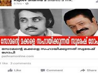 സുരേഷ് ഗോപിയുടെ വ്യാജഫെയ്സ്ബുക്ക് പോസ്റ്റിലൂടെ എം.ജി. സോമനെ അപമാനിക്കാന് ശ്രമം