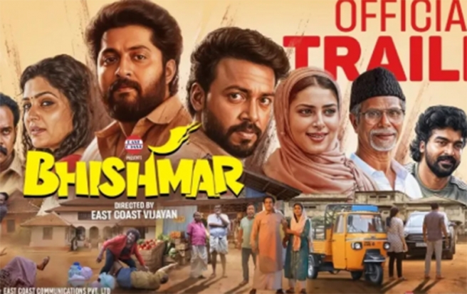 ധ്യാന് ശ്രീനിവാസനെയും വിഷ്ണു ഉണ്ണികൃഷ്ണനെയും പ്രധാന കഥാപാത്രങ്ങളാക്കി ഈസ്റ്റ് കോസ്റ്റ് വിജയന് സംവിധാനം ചെയ്യുന്ന 'ഭീഷ്മര്' എന്ന ചിത്രത്തിന്റെ ട്രെയിലര് പുറത്തുവന്നു. മ്യൂസിക്കല് റൊമാന്റിക് ഫാമിലി ഫണ് ഫില്ഡ് ത്രില്ലര് ആയാണ് ചിത്രം ഒരുക്കിയിരിക്കുന്നത്. ഡ്രീംബിഗ് ഫിലിംസ് വിതരണത്തിനെത്തിക്കുന്ന ചിത്രം മാര്ച്ച് 20ന് തിയറ്ററുകളിലെത്തും.