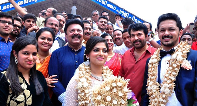 നടന് ലാലു അലക്സിന്റെയും ബെറ്റിയുടെയും മകന് ബെന് ലാലു അലക്സ് വിവാഹിതനായി. ഇന്നലെ പിറവം ഹോളി കിംഗ്സ് ക്നാനായ കാതോലിക് പള്ളിയിലായിരുന്നു ചടങ്ങ്. സുഹൃത്തിന്റെ മകനെ അനുഗ്രഹിക്കാന് നടന് മമ്മൂട്ടിയെത്തി. കോട്ടയം കിടങ്ങൂര് കൈതവേലില് വീട്ടില് സിറില് ജോസിന്റെയും മിനി സിറിലിന്റെയും മകള് മീനു സിറിലാണ് വധു. ഓര്ക്കുട്ട് ഒരോര്മ്മക്കൂട്ട് എന്ന ചിത്രത്തിലഭിനയിച്ച സിറില് ദുബായില് ജോലി ചെയ്യുകയാണിപ്പോള്. മിനി ഐയര്ലണ്ടിലാണ് ജോലി നോക്കുന്നത്. ചിലപ്പോള് ബെന്നും അവിടേക്ക് പറന്നേക്കും. വിസയ്ക്കും മറ്റുമായി ഇരുവരുടെയും വിവാഹം നേരത്തെ രജിസ്റ്റര് ചെയ്തിരുന്നു.