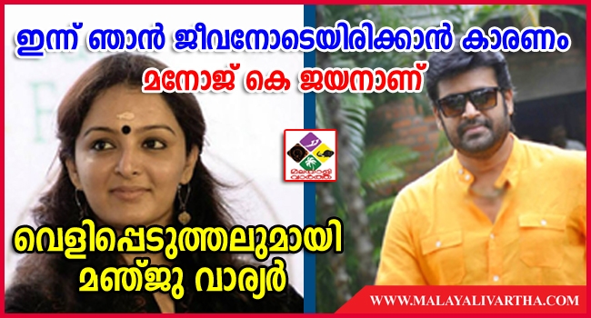 ഇന്ന് ഞാന് ജീവനോടെ ഇരിക്കാന് കാരണം ഒരു പക്ഷെ മനോജേട്ടനാണ്; വെളിപ്പെടുത്തലുമായി മഞ്ജു വാര്യര്