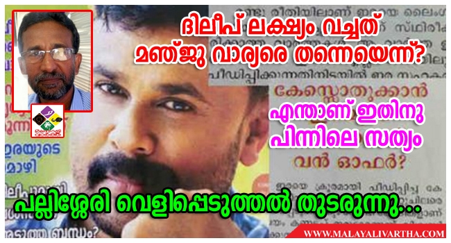 ദിലീപ് ഗൂഢാലോചനാ ആരോപണം ഉയര്ത്തിയത് മഞ്ജു വാര്യര്ക്കെതിരെ; പല്ലിശ്ശേരി വെളിപ്പെടുത്തല് തുടരുന്നു...