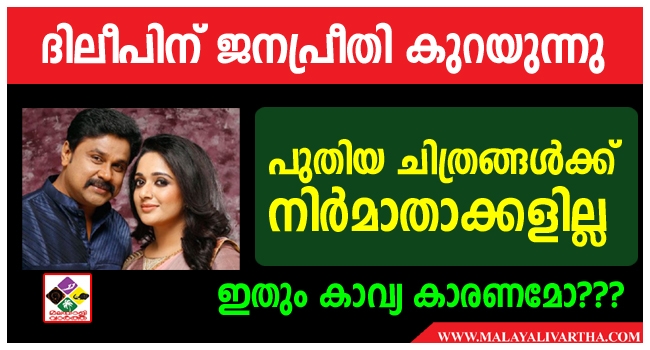 കുടുംബ പ്രേക്ഷകരുടെ പ്രിയങ്കരനായ നടനായിരുന്നു ദിലീപ്. ജനപ്രിയ നായകന് എന്ന പദവി പ്രേക്ഷകര് അറിഞ്ഞ് നല്കിയത് തന്നെയായിരുന്നു. കുട്ടികള്ക്കും പ്രിയങ്കരനായിരുന്നു ദിലീപ്. അതായിരുന്നു നിര്മാതാക്കളെ താരത്തിലേക്ക് ആകര്ഷിച്ച ഘടകം. എന്നാല് ഈ ഇടെയായി താരത്തിന്റെ ജനപ്രീതിക്ക് കുറവ് സംഭവിച്ചുവെന്നാണ് റിപ്പോര്ട്ടുകള്. കാവ്യയാണ് ദിലീപിന്റെ ജനസമ്മതി കുറയാന് കാരണമെന്നാണ് പറയുന്നത്. മഞ്ജുവുമായുള്ള വിവാഹ മോചനവും കാവ്യയെ വിവാഹം കഴിച്ചതും പ്രേക്ഷകര്ക്ക് സ്വീകരിക്കാന് കഴിഞ്ഞില്ലെന്നാണ് പറയുന്നത്. നവമാധ്യമങ്ങളില് ഇതിന്റെ പേരില് ദിലീപ് വിമര്ശനങ്ങളും ഏറ്റുവാങ്ങിയിരുന്നു. നിര്മാതാക്കള് പിന്മാറുന്നതിന്റെ യഥാര്ത്ഥ കാരണം ദിലീപിന്റെ ജനപ്രീതിയിലുണ്ടായ കുറവാണെങ്കിലും കാരണമായി പറയുന്നത് നോട്ട് പ്രതിസന്ധിയാണ്.
