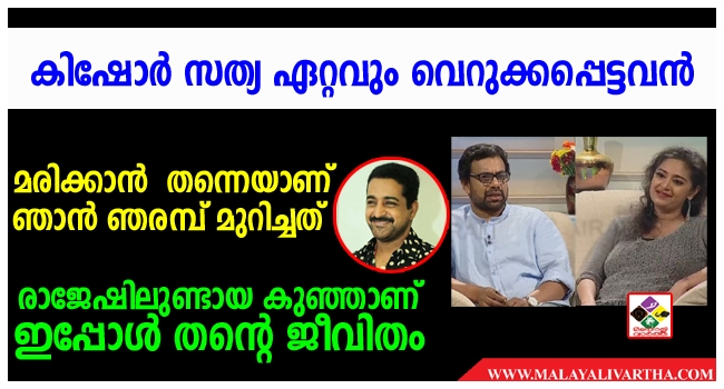 ഈ മനോവിഷമത്തില് ഇരിക്കുന്ന സമയത്താണ് സീരിയല് താരം കിഷോര് സത്യയുമായി അടുക്കുന്നത്. അടിവാരം സിനിമയുടെ സെറ്റില് വച്ചാണ് അടുപ്പം തുടങ്ങിയത്. പിന്നീട് അതു വിവാഹത്തില് കലാശിച്ചു. എന്നാല്, ആ ബന്ധം ശരിയായ അര്ത്ഥത്തില് നീണ്ടുനിന്നത് മൂന്നുമാസം മാത്രമാണ്. താന് ഇന്നു ഏറ്റവും കൂടുതല് വെറുക്കുന്നത് കിഷോര് സത്യയെ ആണ്. രണ്ടു ബന്ധങ്ങള് തകര്ന്നിട്ടും താന് തളരാതെ പിടിച്ചുനിന്നു. ആ സമയത്താണ് സഹോദരിയുടെ സുഹൃത്ത് രാജേഷ് വീട്ടില് നിത്യസന്ദര്ശകനാകുന്നത്. രാജേഷ് തന്നോടു പ്രണയം പറഞ്ഞു. ആദ്യമൊന്നും താന് അതിനെ പ്രോത്സാഹിപ്പിച്ചില്ല. എന്നാല്, പിന്നീട് രാജേഷിന്റെ നിര്ബന്ധത്തിനു വഴങ്ങി വിവാഹത്തിനു തയ്യാറാകുകയായിരുന്നു.