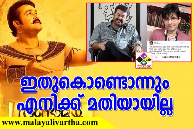മലയാളി ആരാധകരുടെ തെറിവിളിയില് പൊറുതി മുട്ടി കെആര്കെ. ആദ്യമായാവും തന്റെ ഒരു ട്വീറ്റിന് ഇത്രയുംപേര് എതിര്പ്പുമായെത്തുന്നത് അദ്ദേഹം കാണുന്നത്. 'മോഹന്ലാല് ഛോട്ടാ ഭീമിനെപ്പോലെയാണ് ഇരിക്കുന്നതെന്നും പിന്നെങ്ങനെ മഹാഭാരതത്തിലെ ഭീമസേനനെ അവതരിപ്പിക്കുമെന്നും വെറുതെ നിര്മ്മാതാവിന്റെ കാശ് കളയണോ' എന്നുമുള്ള ട്വീറ്റ് ഇന്നലെ രാവിലെയാണ് അദ്ദേഹം തന്റെ അക്കൗണ്ടില് പോസ്റ്റ് ചെയ്തത്. പക്ഷേ ഇന്നാണ് പ്രസ്തുത ട്വീറ്റ് സോഷ്യല് മീഡിയയില് വ്യാപകമായി പ്രചരിച്ചത്. തുടര്ന്ന് കെആര്കെയുടെ ഫേസ്ബുക്ക്, ട്വിറ്റര് അക്കൗണ്ടുകളില് ആരാധകര് വക 'പൊങ്കാല' ആരംഭിച്ചു. മോഹന്ലാല് ആരാധകര് മാത്രമായിരുന്നില്ല അതിന് മുന്കൈ എടുത്തതെന്ന് മാത്രം. കമന്റുകള് വിശ്വാസത്തിലെടുത്താല് മമ്മൂട്ടി ആരാധകരും കെആര്കെയുടെ ഫേസ്ബുക്ക്, ട്വിറ്റര് പോസ്റ്റുകള്ക്ക് താഴെ കമന്റുകളുമായെത്തി.