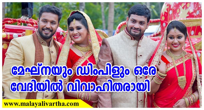 പ്രമുഖ സീരിയല് താരങ്ങളായ മേഘ്ന വിൻസെന്റും ഡിംപിള് റോസും ഒരേ വേദിയില് വിവാഹിതരായി. തൃശൂര് സ്വദേശിയായ ഡോണ് ആണ് മേഘ്നയുടെ വരന്. ഡിംപിളിന്റെ സഹോദരനാണ് ഡോണ്. കൊച്ചി സ്വദേശിയും ബിസിനസുകാരനുമായ ആന്സണ് ഫ്രാന്സിസാണ് ഡിപിംളിന്റെ വരന്. മേഘ്നയും ഡിംപിളും ചെറുപ്പം മുതലേ സുഹൃത്തുക്കളായിരുന്നു. തൃശൂരിലെ പുഴയോരം ഇന്റര്നാഷണല് കണ്വെന്ഷന് സെന്ററില് ഇന്നലെയായിരുന്നു വിവാഹം നടന്നത്.