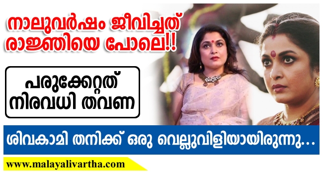 തെന്നിന്ത്യയിലെ മറ്റ് ഭാഷകളിലെ പോലെ തന്നെ മലയാളികള്ക്കും ഏറെ പ്രിയങ്കരിയായ രമ്യാ കൃഷ്ണന് വീണ്ടും സിനിമാ ലോകത്ത് ശക്തയായ സാന്നിദ്ധ്യമായി മാറിയിരിക്കുകയാണ്. ബാഹുബലിയാണ് വിസ്മൃതിയിലേക്ക് ആഴ്ന്നു പോവുമായിരുന്ന രമ്യയ്ക്ക് ഒരു മികച്ച തിരിച്ചുവരവ് സമ്മാനിച്ചത്. ഇതുവരെ പടയപ്പയിലെ നീലാംബരിയായി അറിയപ്പെട്ടിരുന്ന താരം ബാഹുബലി ഒന്നാം ഭാഗം ഇറങ്ങിയതോടെ പ്രേക്ഷകമനസ്സില് ശിവകാമിയായി തീരുകയായിരുന്നു.