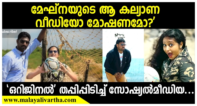 വിവാഹവീഡിയോയുടെ പ്രമോ ഇപ്പോളും യൂട്യൂബിലെ സൂപ്പര്ഹിറ്റായി ഓടുകയാണ്. ടോപ്പ് ട്രന്റിംഗ് ലിസ്റ്റിലുള്ള വീഡിയോ നാല് ലക്ഷത്തോളമാളുകളാണ് കണ്ടുകഴിഞ്ഞിരിക്കുന്നത്. അഞ്ഞൂറില് താഴെ ലൈക്കും, മുപ്പതിനായിരത്തോളം അണ്ലൈക്കുമുള്ള വീഡിയോ അണ്ലൈക്കില് പുതുചരിത്രം തന്നെ രചിക്കുമെന്ന് ട്രോളന്മാര്ക്ക് ഉറപ്പുതന്നെ. പേളീ മാണിയുടെയും ജിപിയുടെയും മാങ്ങാത്തൊലിയുമായി ഇഞ്ചോടിഞ്ച് മത്സരത്തിലാണ് ഇപ്പോള് മേഘ്ന. കയ്യിലൊരു ഫുട്ബോളുമായി മന്ദം മന്ദം നടന്നുവരുന്ന മേഘ്നയുടെ പദചലനങ്ങളുടെ ക്ലോസപ്പിലാണ് വീഡിയോ തുടങ്ങുന്നത്. പിന്നെ പതിയെ ഫുട്ബോള് നിലത്തുവയ്ക്കുമ്പോള് ഗോള് തടുക്കാന് തയാറായി നില്ക്കുന്ന മേഘ്നയുടെ വരനേയും കാണാം.