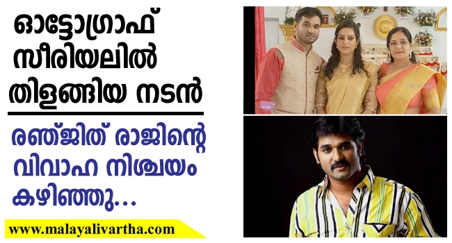 ഓട്ടോഗ്രാഫ് എന്ന സീരിയലില് ജെയിംസ് അളിയനായി തിളങ്ങിയ നടന് രഞ്ജിത് രാജിന്റെ വിവാഹ നിശ്ചയം കഴിഞ്ഞു. ധന്യയാണ് വധു. ഫെയ്സ്ബുക്കിലൂടെ താരം തന്നെയാണ് വിവാഹ വാര്ത്ത ആരാധകരെ അറിയിച്ചിരിക്കുന്നത്. 'അങ്ങനെ മനസ്സ് ചോദ്യം കഴിഞ്ഞു, മെയ് എട്ടിന് കാണാം' എന്നാണ് രഞ്ജിത്ത് ഫെയ്സ്ബുക് പോസ്റ്റില് കുറിച്ചിരിക്കുന്നത്. പഴയകാല സീരിയല് താരം ഉഷയുടെ മകനാണ് രഞ്ജിത്ത്. വീഡിയോ കാണാം;