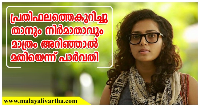 ഇതുവരെ ഒരു മാധ്യമത്തിനും തന്റെ പ്രതിഫലത്തെക്കുറിച്ച് പറഞ്ഞിട്ടില്ലെന്നും അങ്ങനെ ചോദിച്ച് തന്നെ ആരും വിളിച്ചിട്ടില്ലെന്നും പാര്വതി പറയുന്നു. എന്നിട്ടും ചില മാധ്യമങ്ങള് ഇതുസംബന്ധിച്ച് തന്നോട് ചോദിക്കാതെ വാര്ത്ത കൊടുത്തെന്നും പാര്വതി വ്യക്താക്കി. യാതൊരു വിവരങ്ങളും അന്വേഷിക്കാതെയാണ് വാര്ത്ത കൊടുക്കുന്നത്. ഇതാണോ മാധ്യമധര്മം. എവിടെ നിന്നോ കിട്ടിയ വിവരങ്ങള് അനുസരിച്ച് വാര്ത്തകള് സ്വയം ഉണ്ടാക്കുകയാണ്. എന്റെ പ്രതിഫലത്തെക്കുറിച്ച് ചര്ച്ച ചെയ്യാന് ഇവിടെ ഞാനും എന്റെ നിര്മാതാവും ഉണ്ട് അല്ലാതെ മറ്റൊരാളും ഇതില് ഇടപെടാന് വരേണ്ടതില്ല. ദയവ് ചെയ്ത് എന്നെക്കുറിച്ച് വന്ന വ്യാജവാര്ത്തകള് പിന്വലിക്കണം. ഇക്കാര്യത്തില് ഒരുപാട് വിഷമമുണ്ടെന്നാണ് പാര്വതിയുടെ പ്രതികരണം