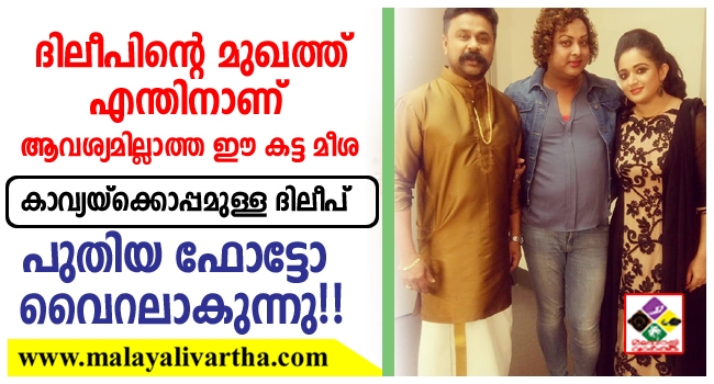 ദിലീപിന്റെ മുഖത്ത് ആവശ്യമില്ലാത്ത ആ മീശയാണ് ഫോട്ടോയിലെ ആകര്ഷണം. കാവ്യയ്ക്കും മേക്കപ്പ് ആര്ട്ടിസ്റ്റ് അവിനാശിനുമൊപ്പം ദിലീപ് നില്ക്കുന്ന ഫോട്ടോ പുറത്ത് വന്നത് ദിലീപ് ഷോ 2017 യുഎസ്എ കാനഡ പരിപാടിയുടെ ഫേസ്ബുക്ക് പേജില് നിന്നാണ്.