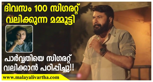അടുത്തിയെ ട്രോളന്മാര് വലിയ വിഷയമാക്കിയ സംഭവമായിരുന്നു മമ്മൂട്ടിയുടെ സിഗരറ്റ് വലി. പണ്ട് താന് ഒരു ദിവസം നൂറ് സിഗരറ്റ് വരെ വലിക്കുമായിരുന്നു എന്നും, ഇപ്പോള് പൂര്ണമായും പുകവലി നിര്ത്തി എന്നും മമ്മൂട്ടി പറഞ്ഞപ്പോള് 'ഇങ്ങള് ഇതെന്ത് തള്ളാണെന്റ് ബാബ്വേട്ടാ' എന്നായിരുന്നു ട്രോളന്മാരുടെ ചോദ്യം. എത്രതന്നെ ട്രോളിയാലും ഇല്ലെങ്കിലും അത് സത്യമാണ്.. സിഗരറ്റ് വലിയുടെ കാര്യത്തില് അക്കാലത്ത് മമ്മൂട്ടിയെ തോത്പിക്കാന് മറ്റൊരു നടന് മലയാളത്തിലില്ലായിരുന്നു എന്നാണ് കേട്ടത്. എന്നാല് ഈ മമ്മൂട്ടി നടി പാര്വ്വതിയെ സിഗരറ്റ് വലിക്കാന് പഠിപ്പിച്ച കഥയെ കുറിച്ച് നിങ്ങള്ക്കറിയാമോ..?
